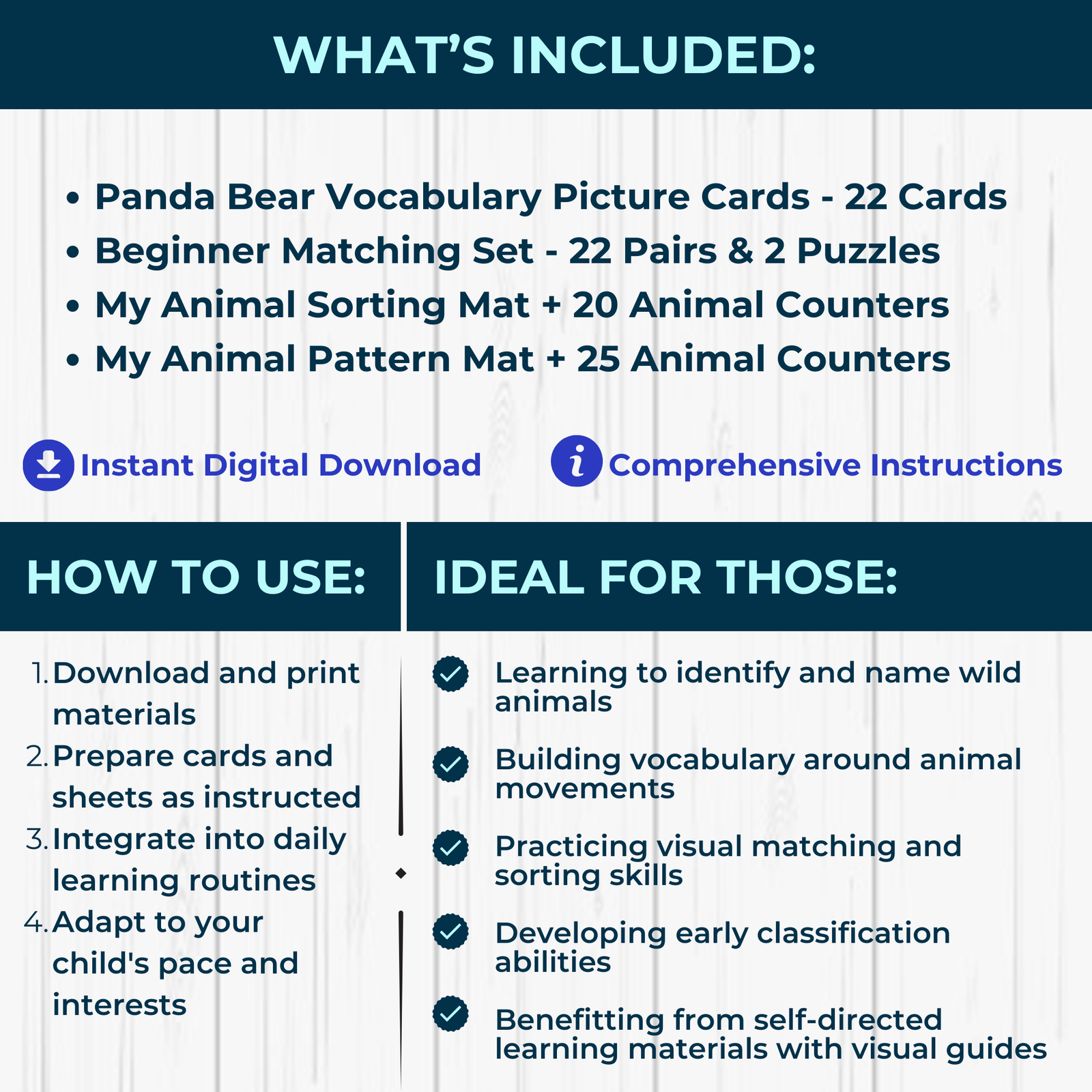 - Panda Bear Vocabulary Picture Cards – Wild animals and action verbs – 22 Cards