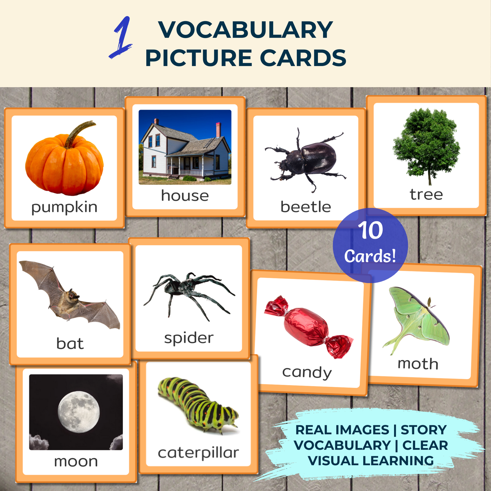 - Vocabulary Picture Cards – 10 x Halloween-themed cards